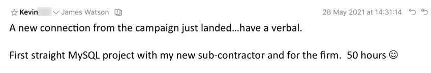 If the prospect replies with interest then it's over to you to carry on the conversation. If they do not reply, we will continue to send them "soft" messages for up to 90 days to ignite the conversation.